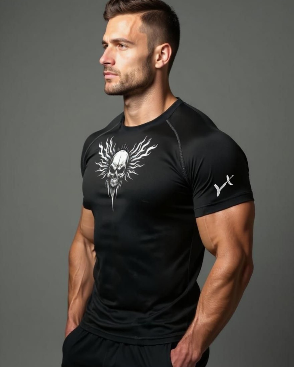 YOROX Skull Designed Compression Half Sleeves T-Shirt